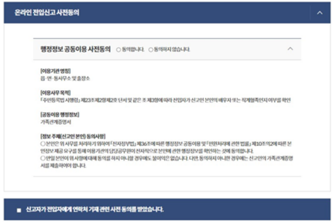 전입신고가 신청되면 이후 전입자에게 이에 대한 확인 절차가 진행됩니다. 아래의 절차를 참고하시어 전입자 전원의 동의를 진행해 주시기 바랍니다.