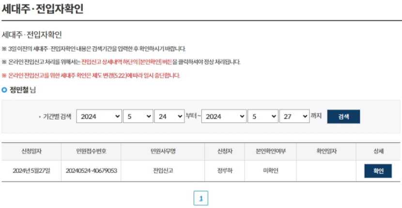 2024년 5월 22일부터 온·오프라인에서 전입신고 신청 시 개인정보 확인 절차가 강화되었습니다.