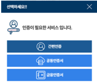 2. 개인인증을 위해 원하는 인증서를 선택하시어 인증을 완료합니다.
