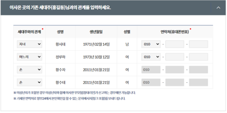전입자 전원에 대한 연락처 정보를 입력하도록 변경되었다고 합니다.