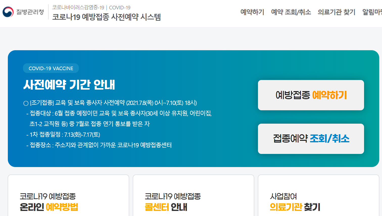 7월 8일부터 보육교사 코로나 화이자 백신 예약인데..