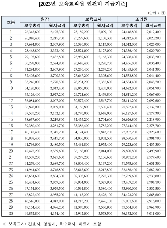 2023년 보육교직원 인건비 지급기준