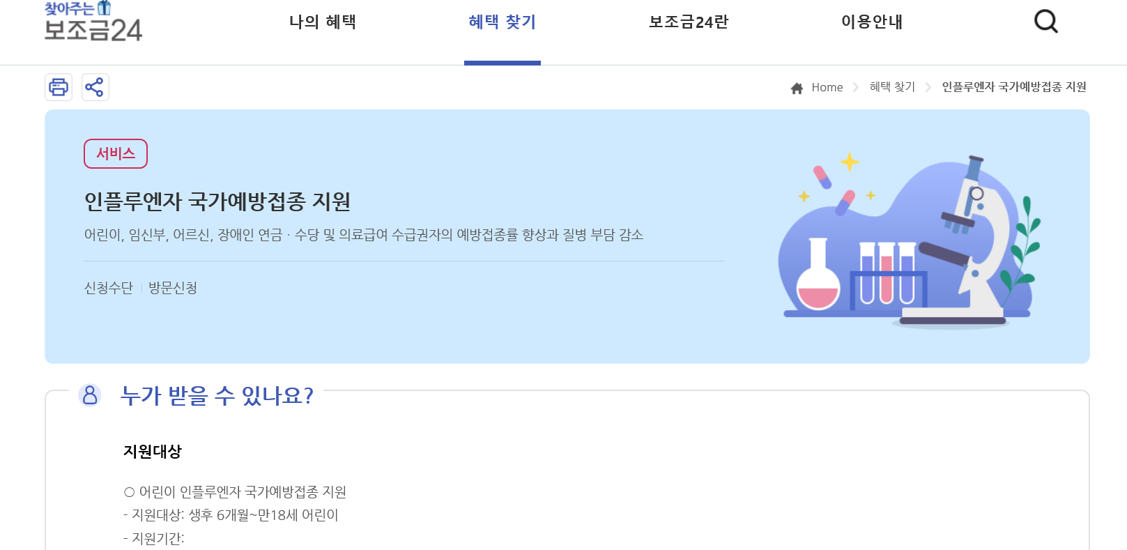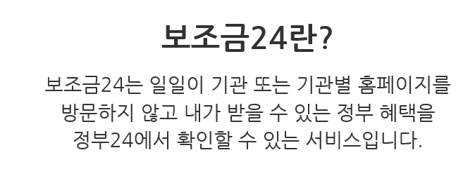 - 보조금24에서 안내되고 있는 서비스 중 일부 서비스는 수급 여부를 시스템 간 정보연계가 되어 있지 않아 받고 있지만 받을 수 있는 혜택으로 안내되고 있습니다.