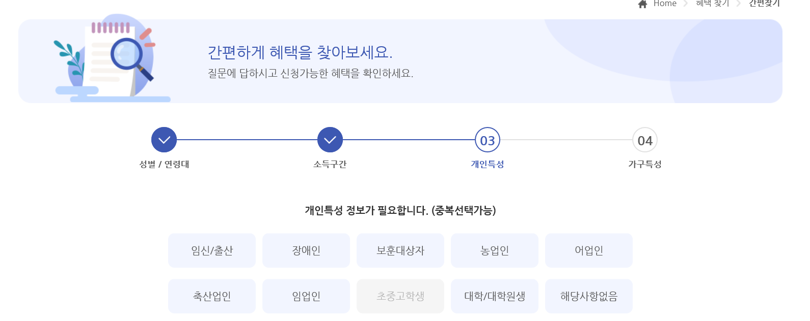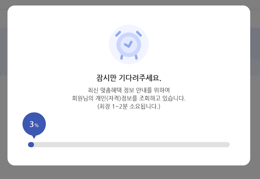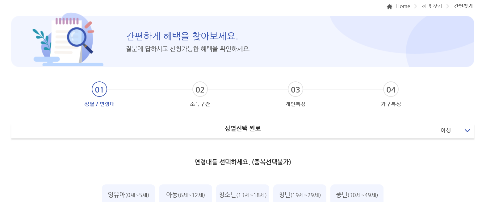 - 소득과 자격정보 중 일부 정보는 올해 연계 예정이거나 시스템으로 관리하고 있지 않을 경우 맞춤 안내 결과가 실제와 다를 수 있습니다.