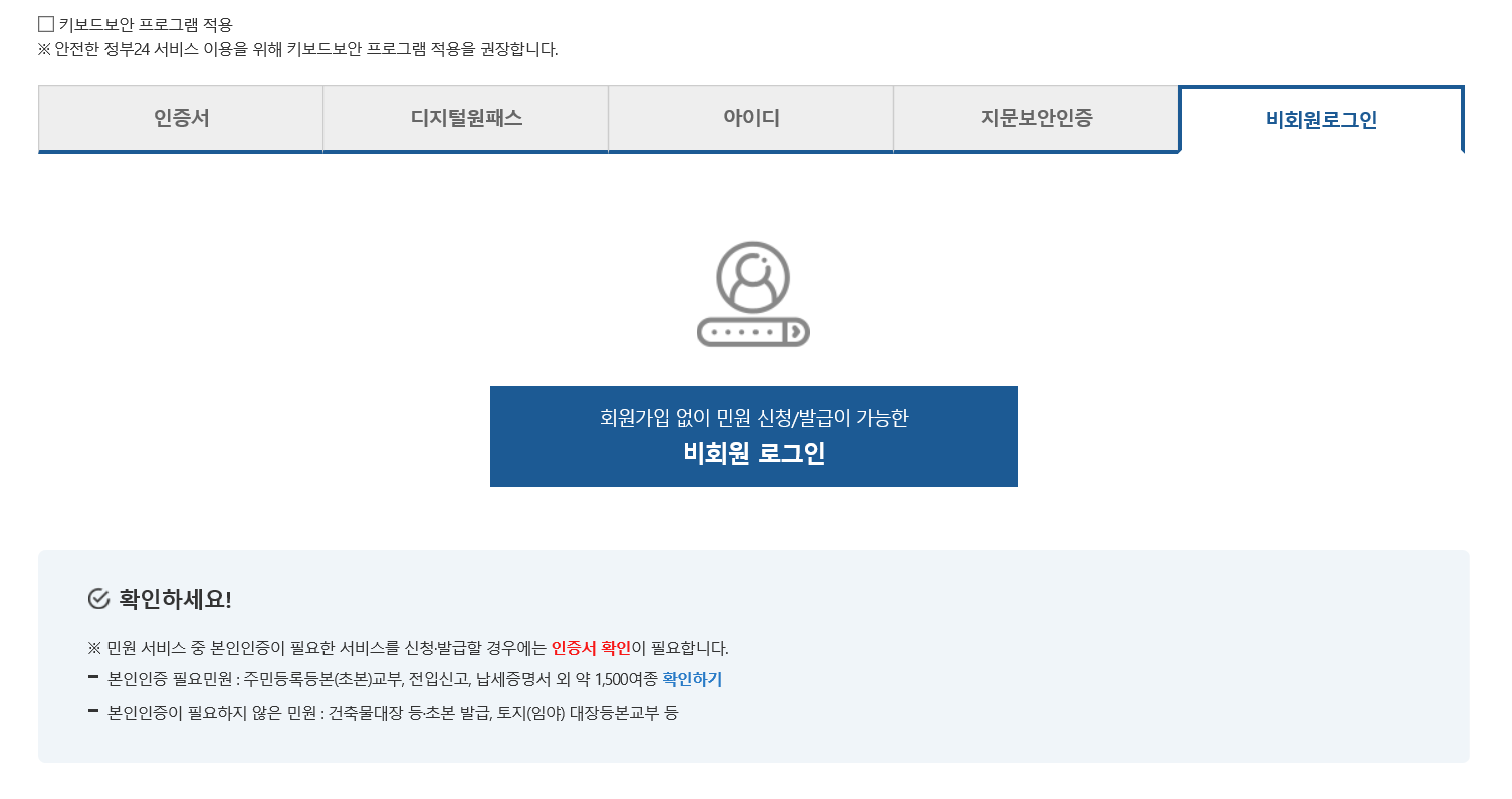 일단 제가 보조금24에서 바로 비회원으로 로그인 시도를 해보았습니다.