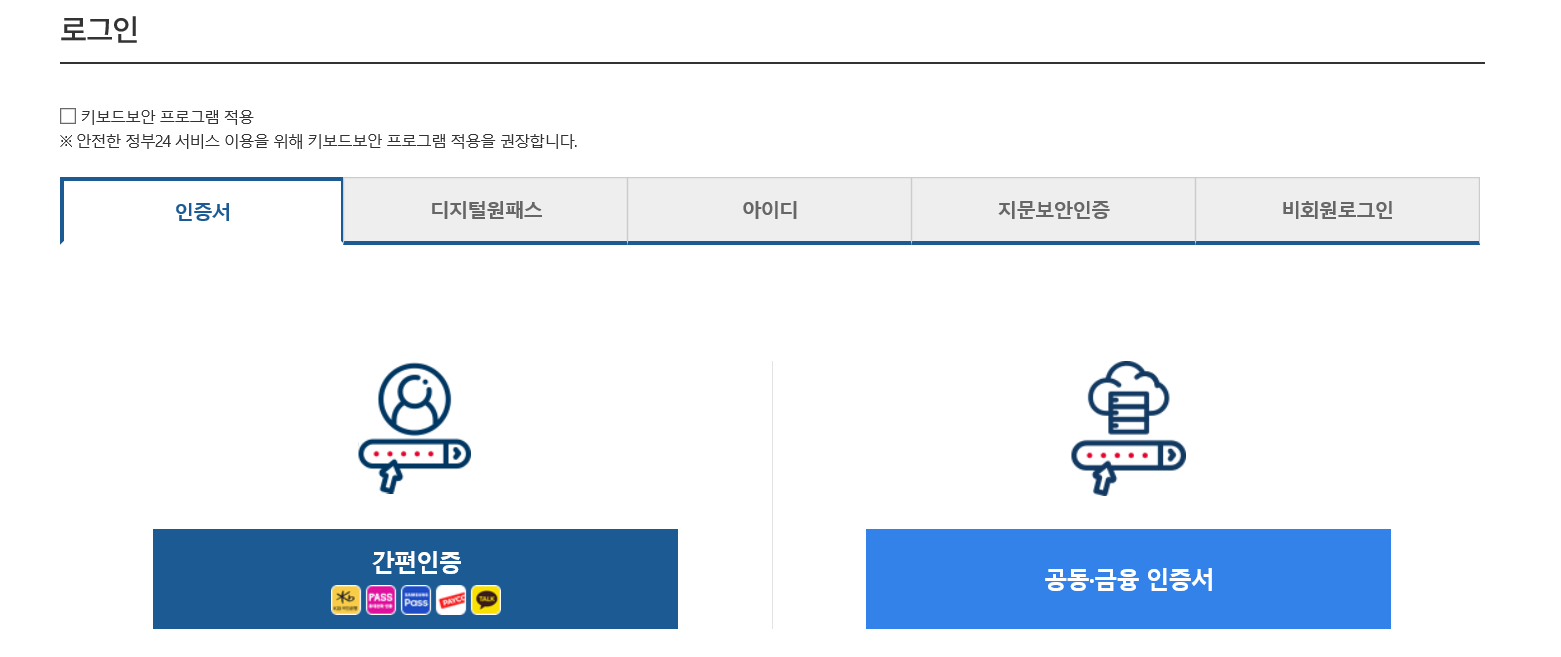 그래서 저는 예전부터 정부24를 사용하고 있어서 들어갈수 있었습니다.