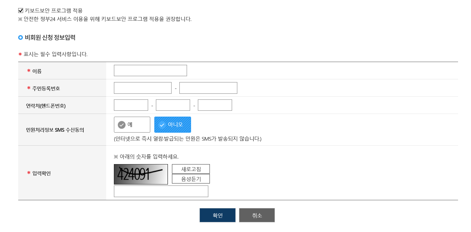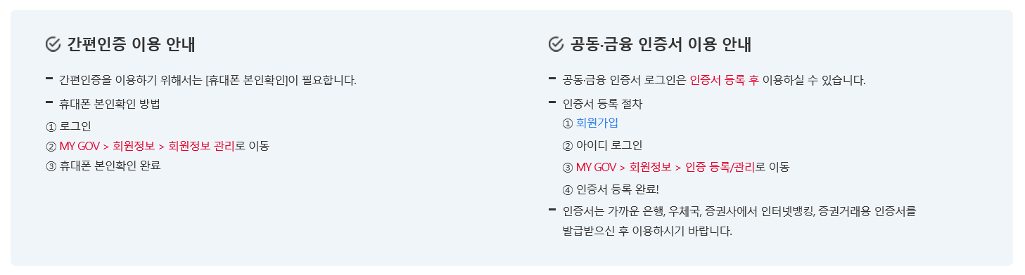 일단 정부24 회원가입이 되어있으면 될것 같습니다.