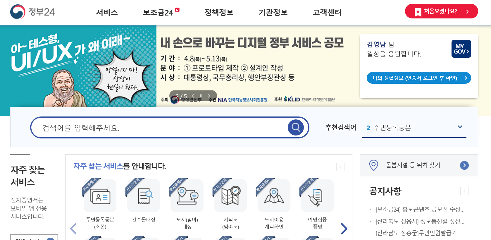정부24는 최근 잘 사용하고 있는 사이트인데..