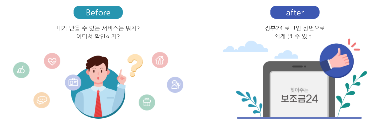 - 서비스별 소득기준, 가구 특성에 관련된 자격에 대한 정보연계를 확대하고 있어 추후 맞춤 안내 결과에 대한 신뢰도도 향상될 것입니다.