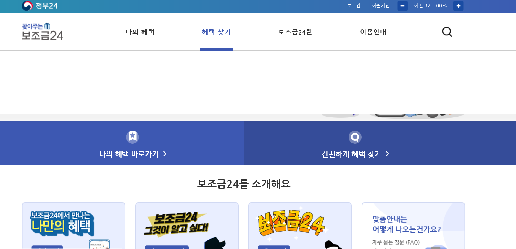 아래의 창처럼 보조금24를 클릭해서 들어가면 처음 나왔던 보조금24 화면을 볼 수 있습니다.