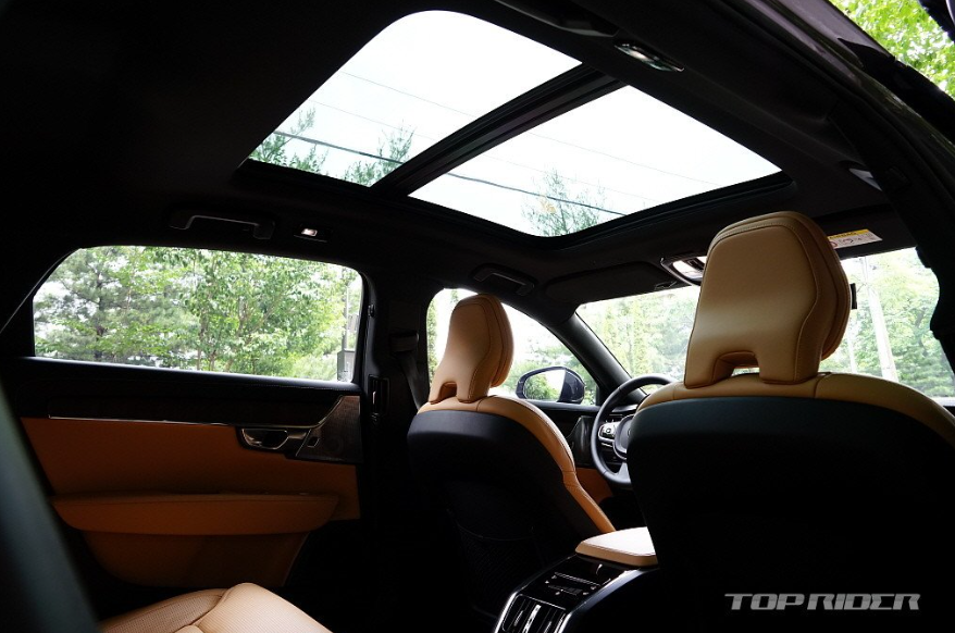 실내 디자인은 최근 유행하는 북유럽 스타일의 럭셔리함을 강조했습니다. 수평형 대시보드를 중심으로 가죽과 금속, 우드를 적절해 조합해 고급스러운 분위기입니다. 오레포스사의 크리스탈로 마감된 기어노브와 바워스&윌킨스 사운드 시스템, 그리고 새 차 냄새가 없는 것이 특징입니다.