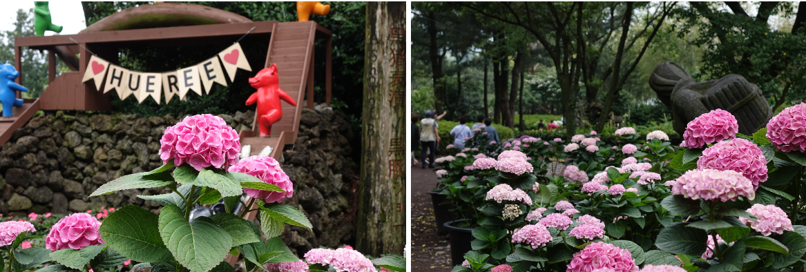 올 봄에 가장 먼저 수국을 만나 볼 수 있는 제주 서귀포시의 휴애리 자연생활공원에서는 오색빛깔 수국을 맛볼 수 있습니다. 온실, 수국 정원 등 공원 곳곳에서 볼 수 있는 다양한 수국을 즐길 수 있으며 제주도민과 관광객들에게 많은 인기를 얻고 있습니다.