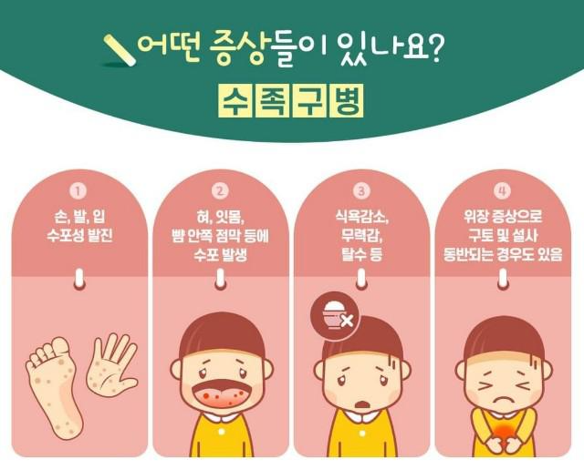 수족구병은 주로 5세 이하 영유아에서 많이 발생하며 학생 및 성인에게서도 발생하지만 증상은 경미하다고 합니다.