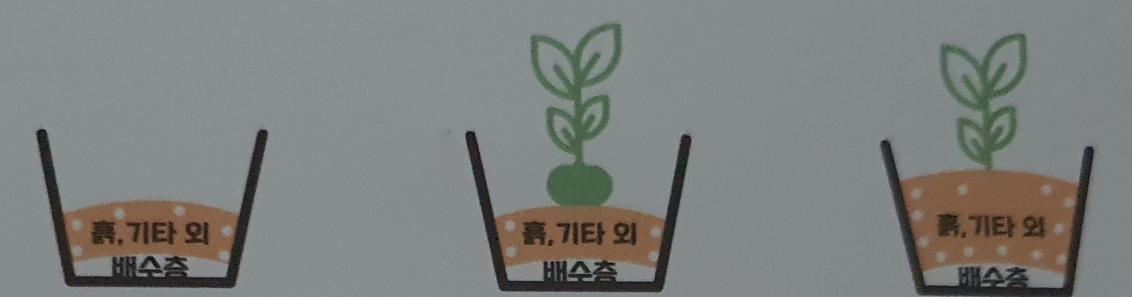 배수층은 화분 깊이의 1/4 정도로 녹소토, 마사토 등을 깔아주면 좋습니다.