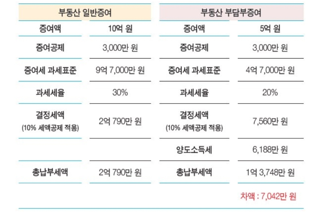 부동산 일반증여와 부담부증여 비교