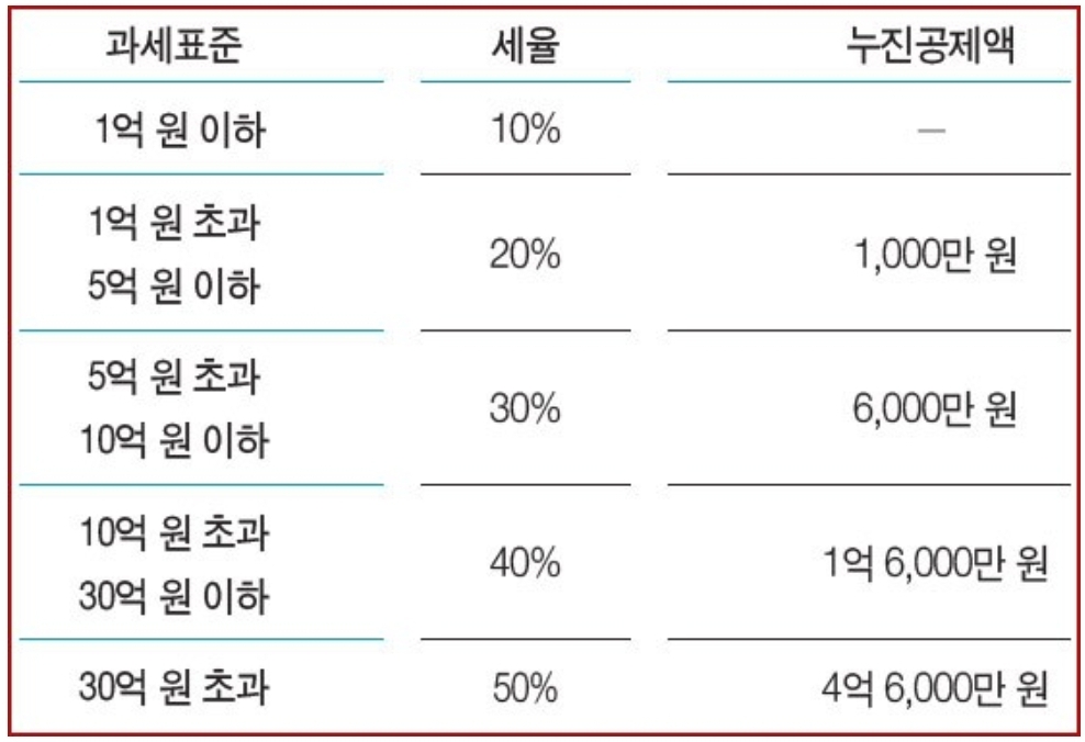 증여세율은 상속세율과 동일하다고 합니다.