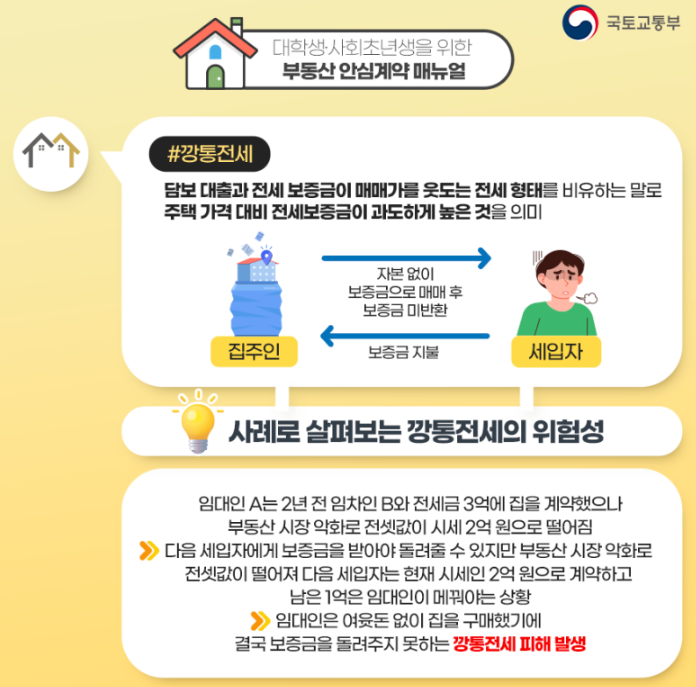 '전세사기'를 키워드로 했을 때 자주 나타나는 '깡통전세'와 '역전세' 많이 들어보셨을 것입니다. 깡통전세는 모르고 당하면 무서운 피해이기에 이제는 꼭 확인해야 할 부분입니다.