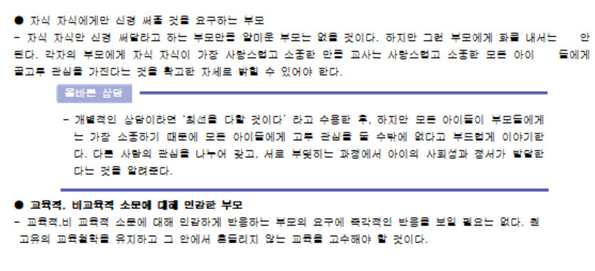 우와같은 전문 지식을 가지고 있어야 부모님들과 상담에서 교사신뢰를 갖을 수 있습니다.