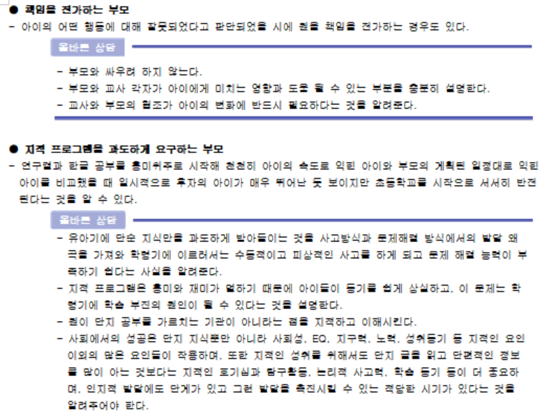 우와같은 전문 지식을 가지고 있어야 부모님들과 상담에서 교사신뢰를 갖을 수 있습니다.