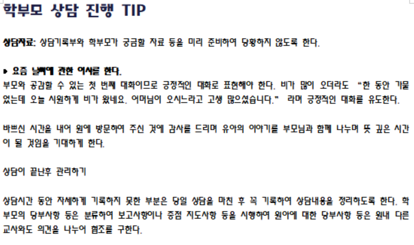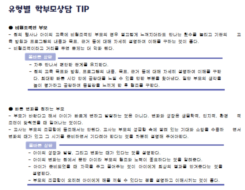 상담전에 미리 읽어두시고 좋은 글은 색펜으로 줄을 그어놓으시면 상담때 부모님께 전달함으로써 분명 좋은 상담이 이루어질것이라 생각이 듭니다.