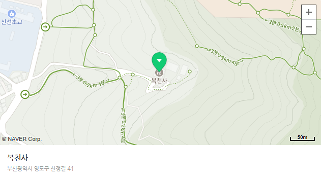 복천사는 부산의 등산 코스 중 하나인 영도 봉래산(395m) 자락에 있습니다.