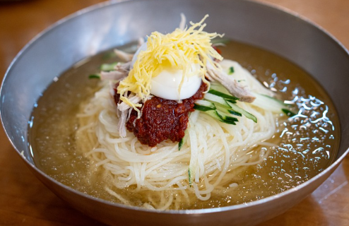 더위를 식히기 위해 살얼음이 둥둥 떠 있는 시원한 밀면 유수의 감칠맛이 느껴집니다.