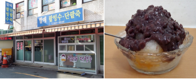 한편 이기대 코스를 즐기고 난 뒤 지친 몸에 활력을 줄 수 있는 또 다른 명소가 있습니다. 바로 동생말 인근 용호동에 있는 '할매팥빙수' 집의 단팥팥빙수와 팥죽입니다.