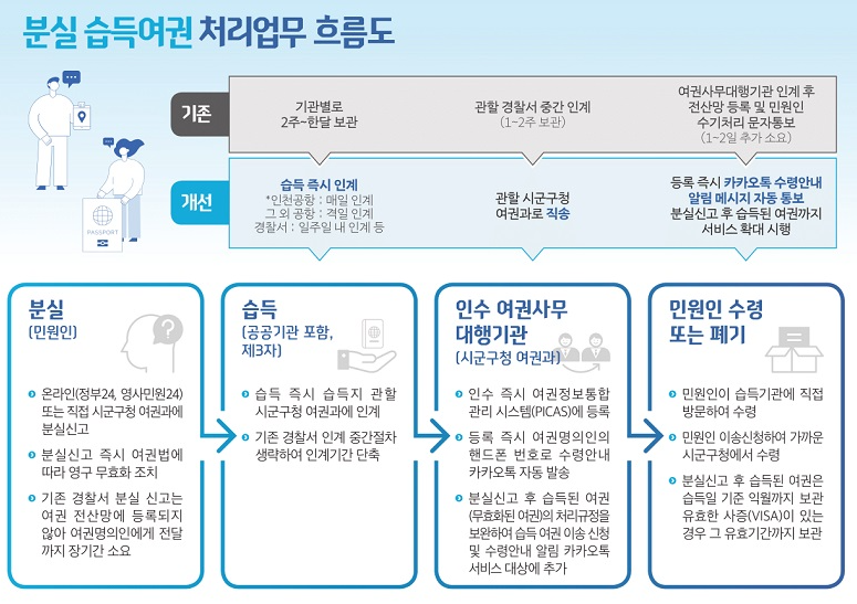 이에 따라 분실 여권이 시군구청에 전달되기까지 최대 한 달 이상 걸리던 절차가 이제 빠르면 이틀 이내로 줄어들 전망입니다.