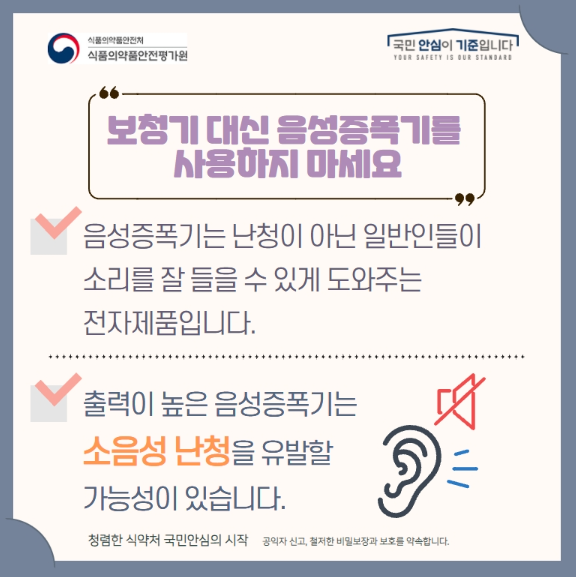보청기 대신 음성증폭기를 사용하지 않아야 합니다.