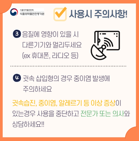 귓속습진, 중이염, 알레르기 등 이상 증상이 있는 경우 사용을 중단하고 전문가 또는 의사와 상담해야 합니다.