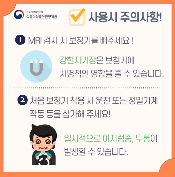 2. 처음 보청기 착용 시 운전 또는 정밀기계 작동 등을 삼가해 주세요!