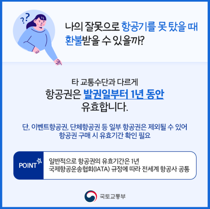 단, 이벤트항공권, 단체항공권 등 일부 항공권은 제외될 수 있어 항공권 구매 시 유효기간 확인이 필요하다고 합니다.
