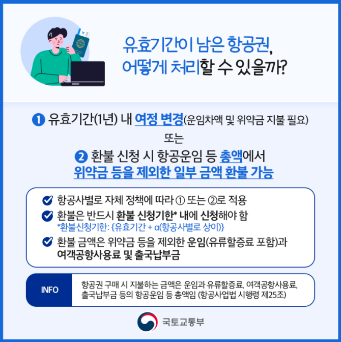 항공권 환불은 구매처(항공사, 여행사 등)를 통해 신청 가능하다고 합니다.