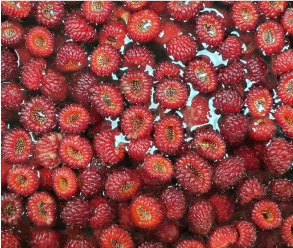 산딸기는 일반 딸기보다 단단하므로 흐르는 물에 씻는 것이 좋습니다. 산딸기는 30초 이상 물에 담가두면 비타민 C가 물에 녹아 빠져 나옵니다.