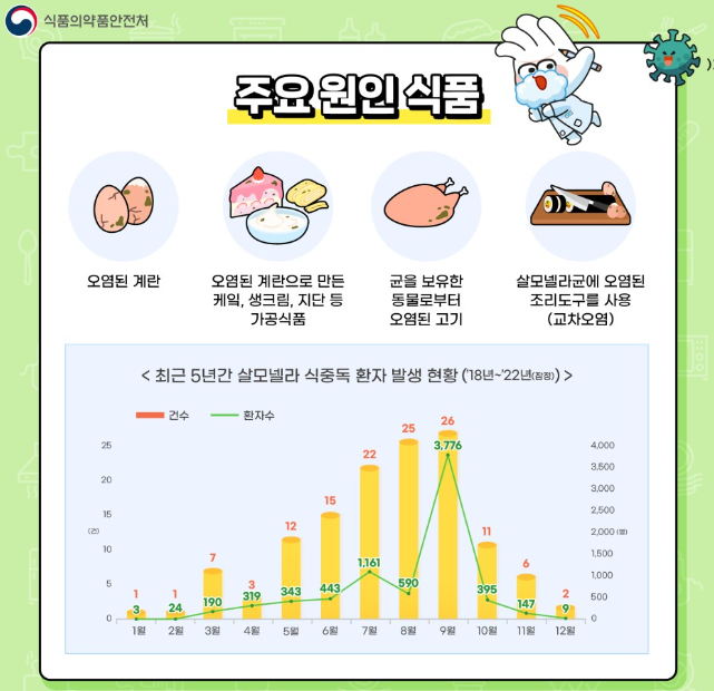 오늘은 살모넬라균 주요 원인 식품과 조리법에 대해 알아보겠습니다.