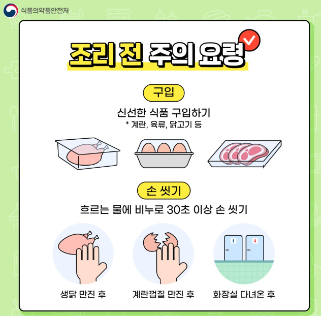 - 생닭 만진 후, 계란 껍질 만진 후, 화장실 다녀온 후