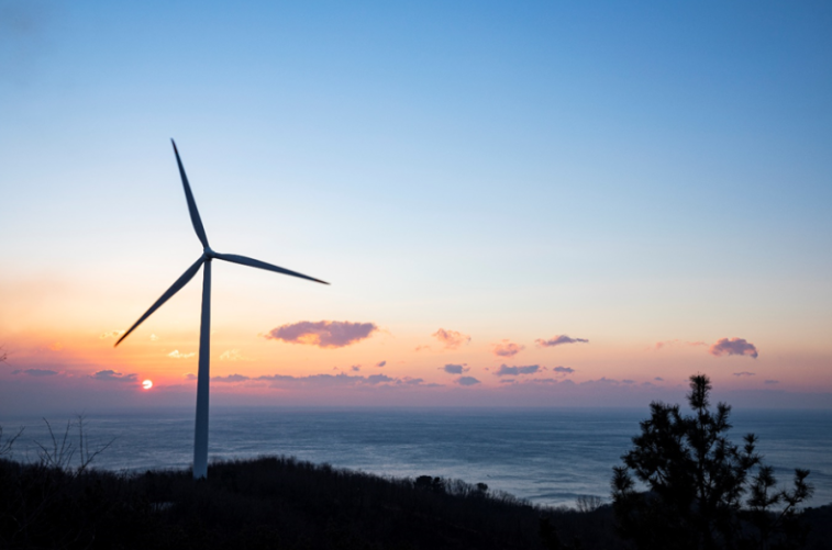 풍력발전기가 선사하는 이국적인 풍경 속 해돋이