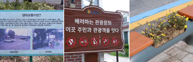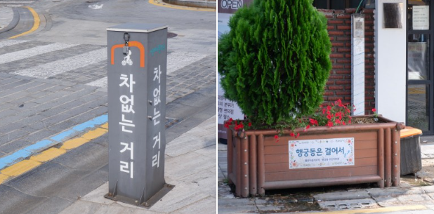 생태교통 마을을 조성함으로써 행궁동은 자동차보다 사람을 중점으로 보행 공간을 만들어 가게 되었다고 합니다. 그 결과 지금은 주말이 되면 젊은 사람들이 찾아오는 명소가 되었다고 합니다. 환경친화적인 생태교통 마을을 조성하기 위해 길거리에 의자도 화분으로 이용하는 등 일상적인 부분에서도 생태교통 마을을 조성하기 위해 노력하는 모습을 엿볼 수 있습니다.