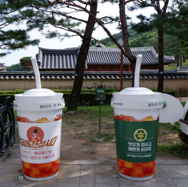 재미있는 시설물도 눈에 띄었는데, 행궁동의 흡연구역에서는 일반 담배꽁초가 아닌, 담재꽁초를 통해 투표할 수 있는 담배꽁초 투표함을 만들어 행궁동에 더 필요한 시설에 대한 설문조사를 유익하고 재미있는 방법으로 활용하고 있는 모습을 볼 수 있습니다.