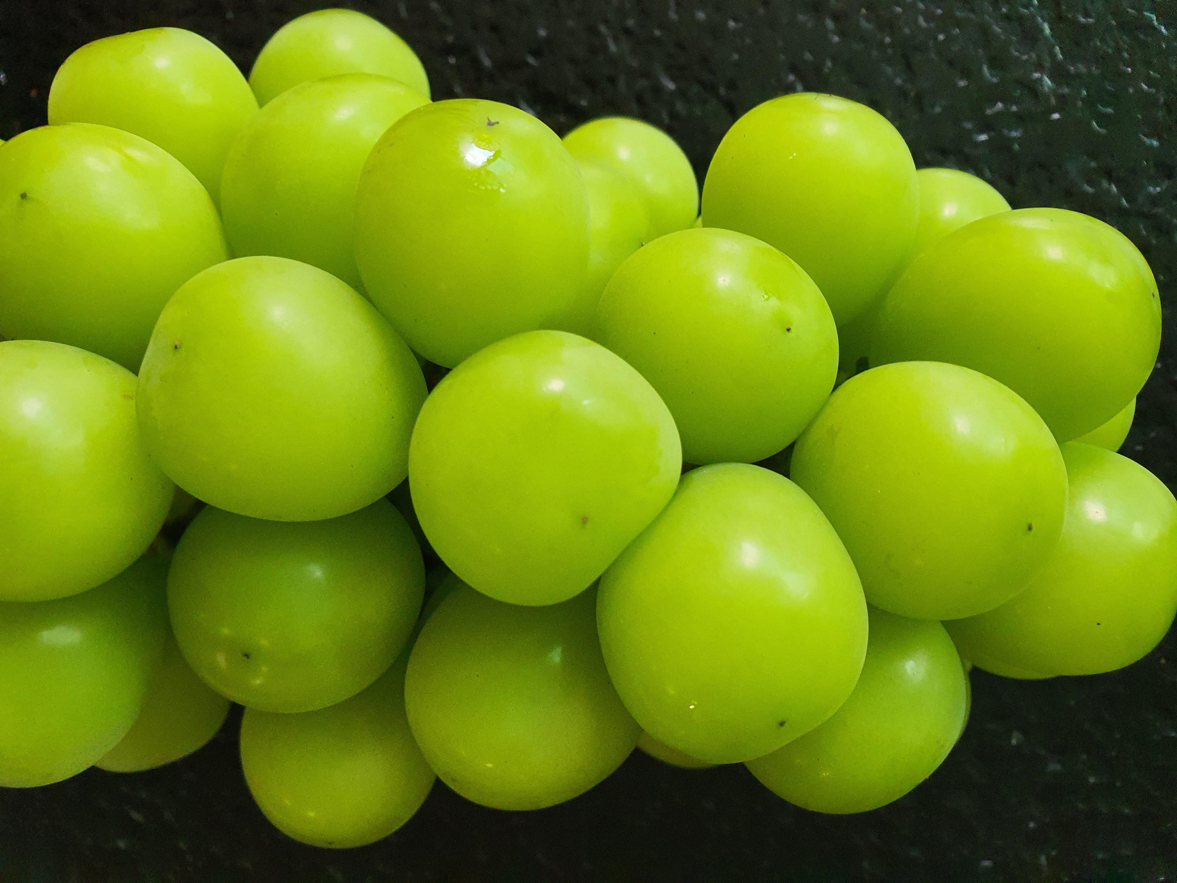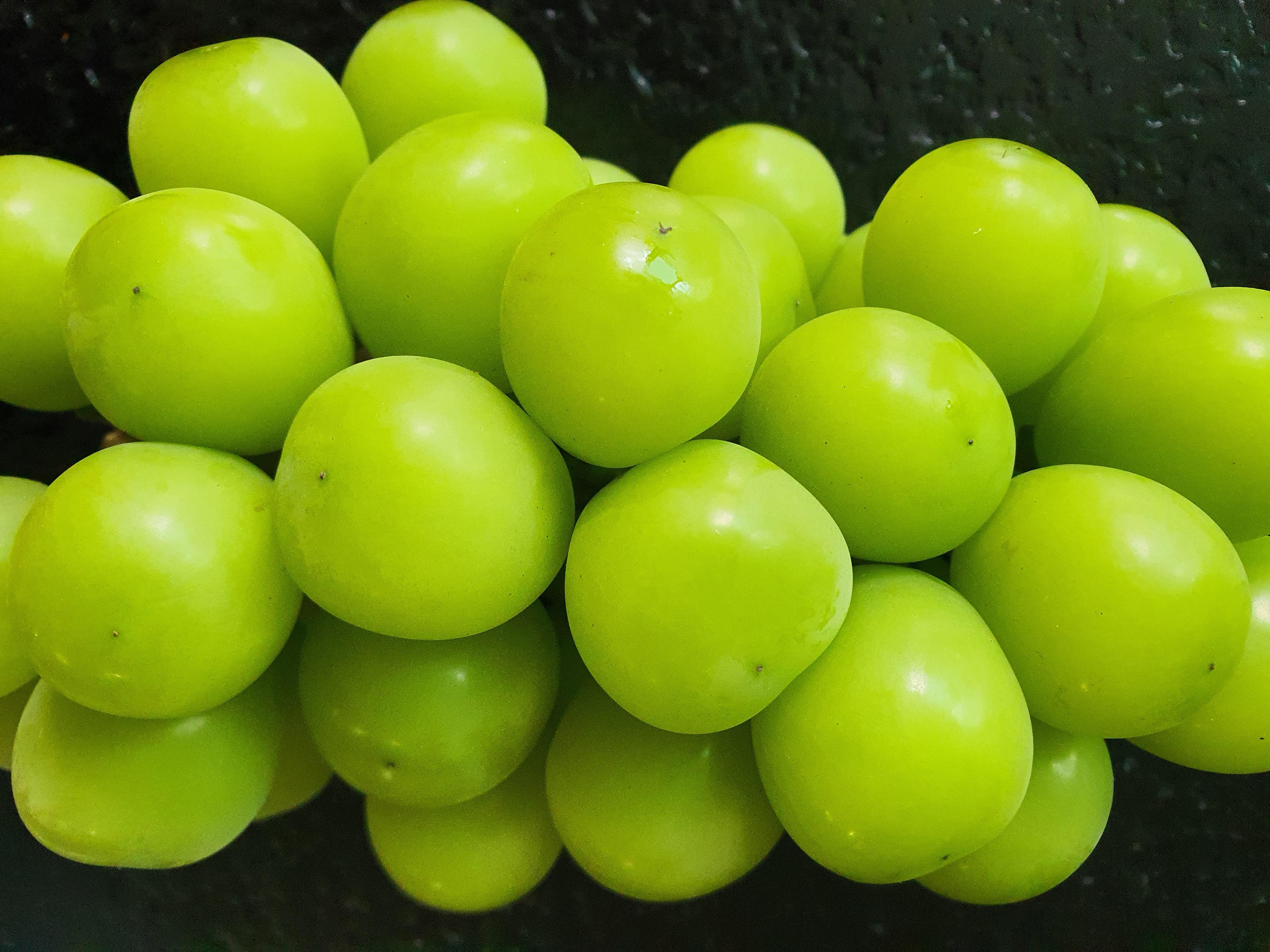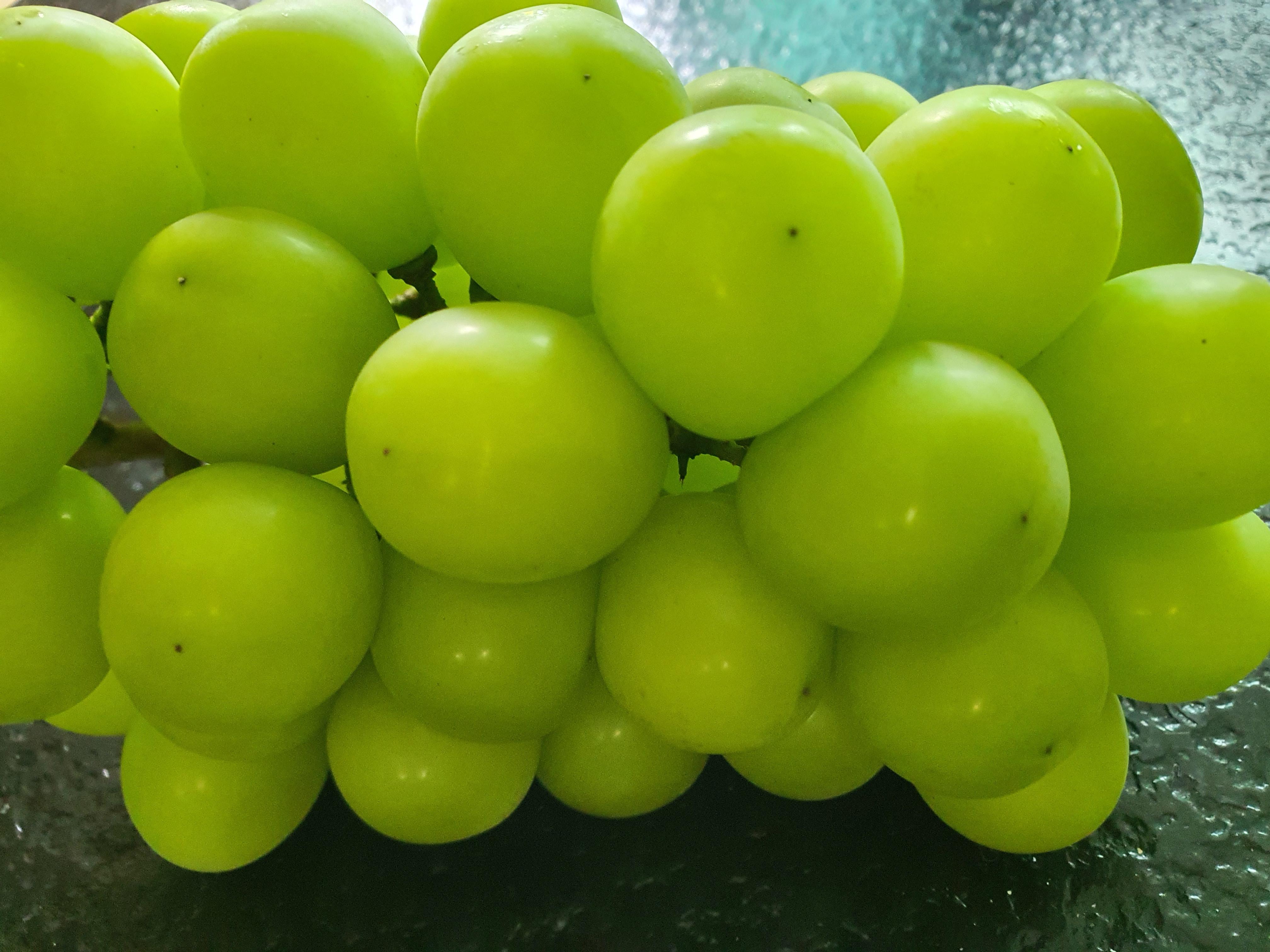 샤인머스캣은 일본에서 만든 청포도 종으로 껍질 채 먹을 수 있는 청포도로 과육은 단단하고 아삭아삭한 식감이 있으며, 즙이 많고 유럽 포도에서 맡을 수 있는 머스캣 향이 강하여 씹을 수록 망고와 같은 향이 납니다.