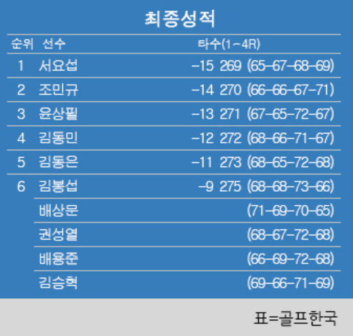 1위 : 서요섭 -15 269 (65-67-68-69)