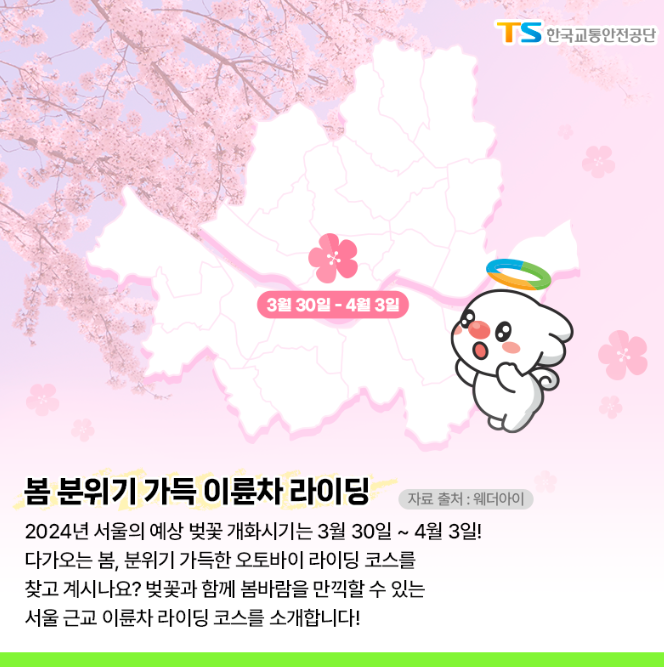 2024년 서울의 예상 벚꽃 개화시기는 3월 30일~4월 3일이라고 합니다. 이번주 분위기 가득한 오토바이 라이딩 코스를 찾고 계신가요? 벚꽃과 함께 봄바람을 만끽할 수 있는 서울 근교 이륜차 라이딩 코스를 소개해 드리겠습니다.