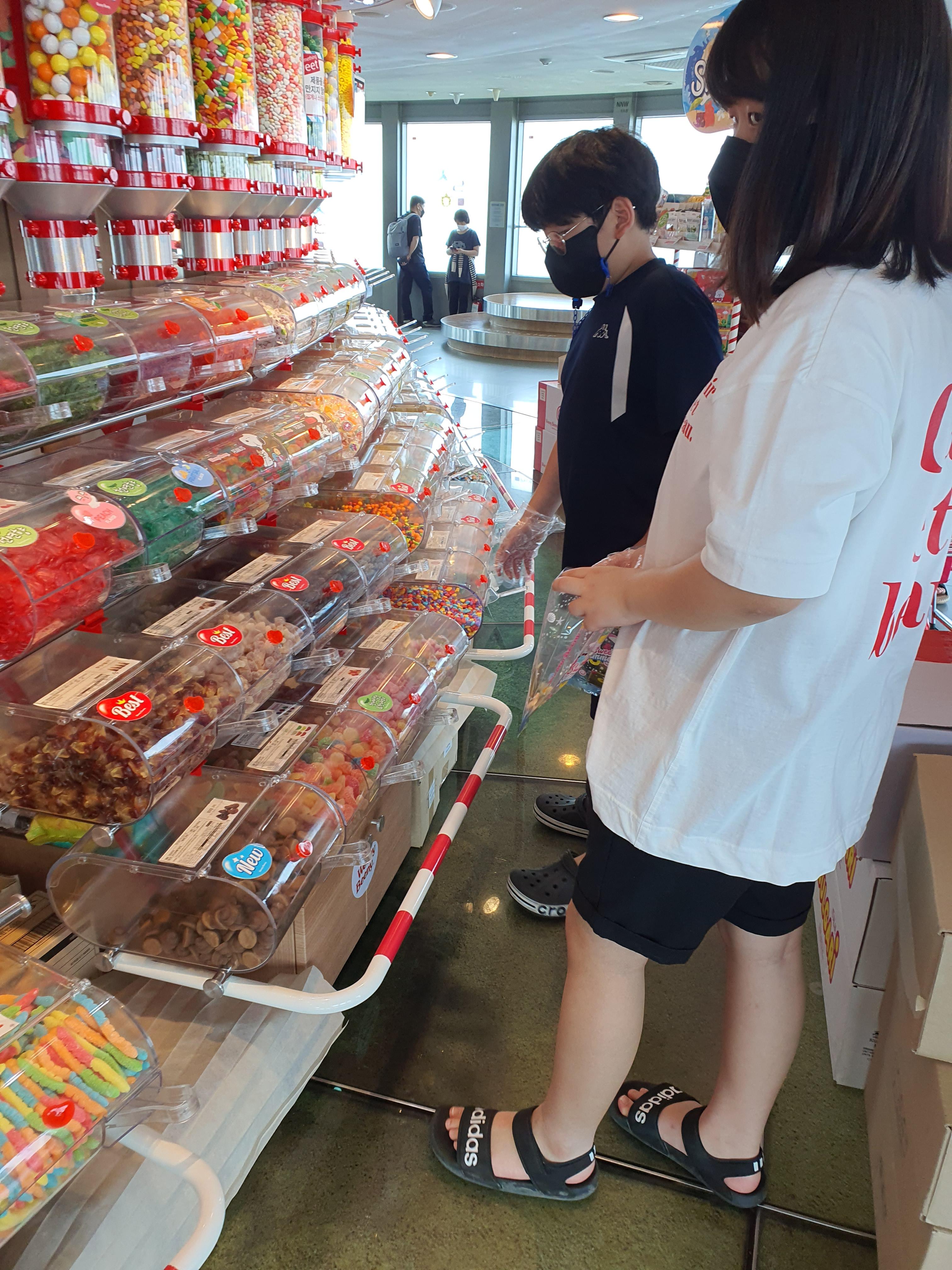 아이들의 지루함을 달래주기 위해 달달한 간식 코너로 갔습니다.