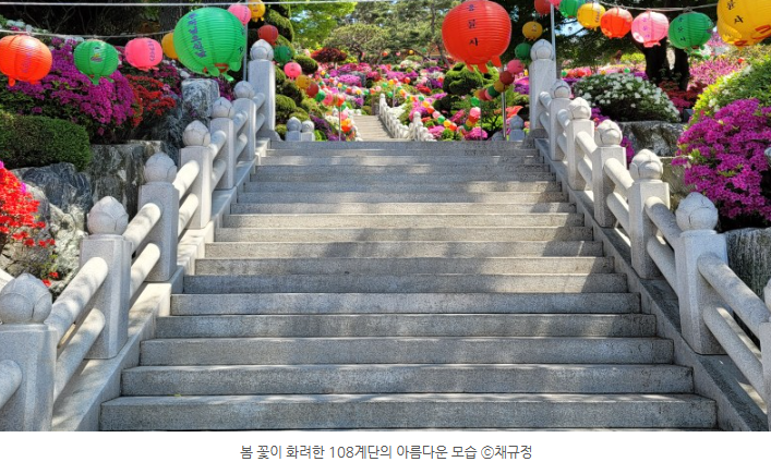 "이 세상일이 어디 자기 마음먹을 데로 됩니까. 그렇지만 어찌겠어요. 이겨내고 순리대로 살아가는 수밖에 별다른 방법이 없잖아요. 108 계단을 하나씩 하나씩 올라오면서 가음에 간직하고 있는 번뇌를 쌓여있는 순서대로 버리고 올라와 대웅전을 거쳐 이곳 탑에서 마무리를 하고 나면 한결 마음이 가벼워집니다."라면서 마니차를 열심히 돌리고 있었다고 합니다.