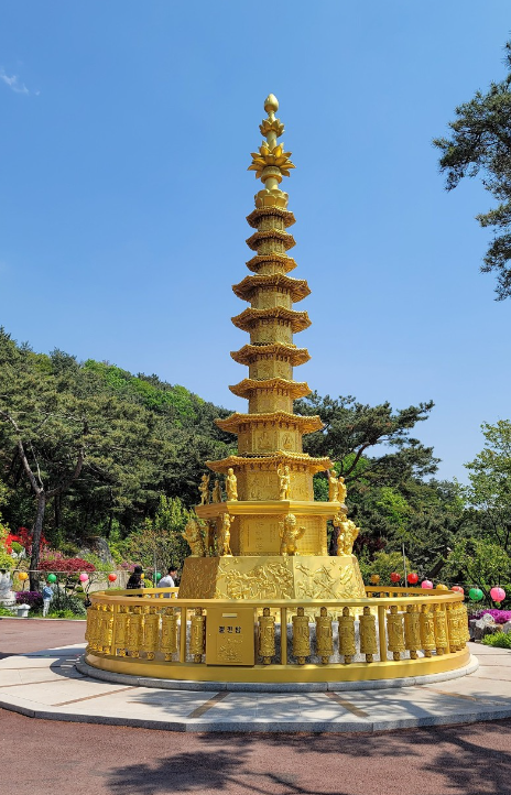 스리랑카에서 가져온 부처님 진신 사리 5관을 보관하고 있으며, 탑 둘레에 마니차 55개를 설치했다고 합니다.