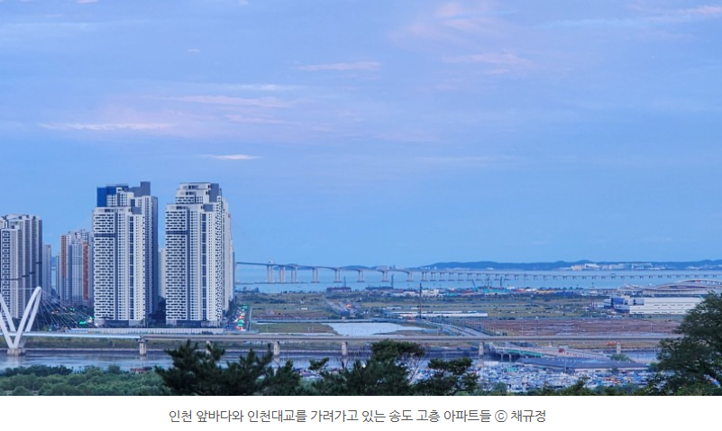 송도국제도시 개발로 고층 아파트들이 많아 들어서면서 서해바다와 인천대교가 가려지고 있어서 아쉽기도 했습니다.