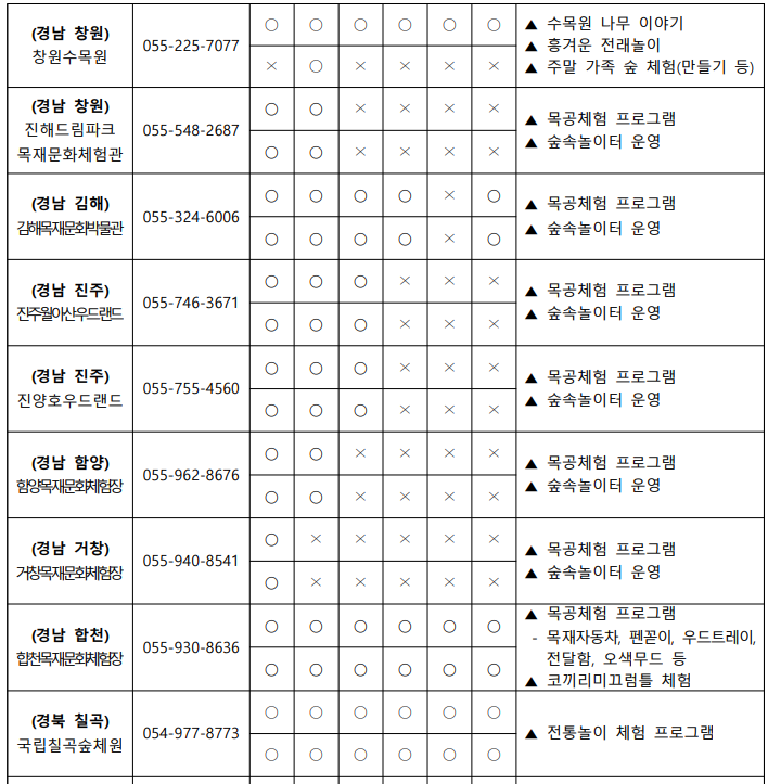 수목원, 치유의숲, 식물원, 목재문화체험장 등 산림관련시설