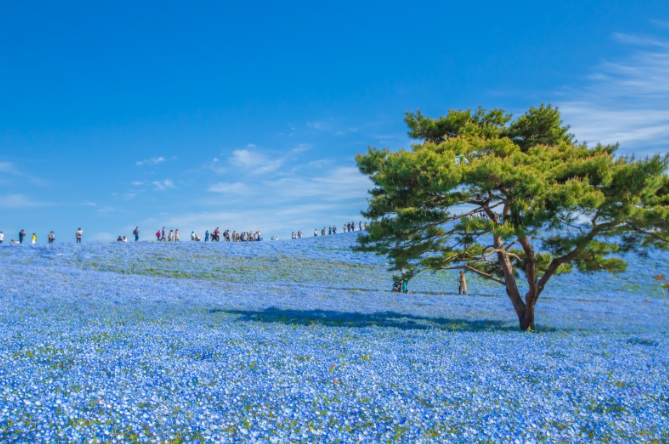 봄에 일본 꽃 하면 삿포로의 분홍색 벚꽃을 연상하시나요? 벚꽃도 물론 아름답지만 일본에는 하늘색 네모필라의 바다가 있다고 합니다.