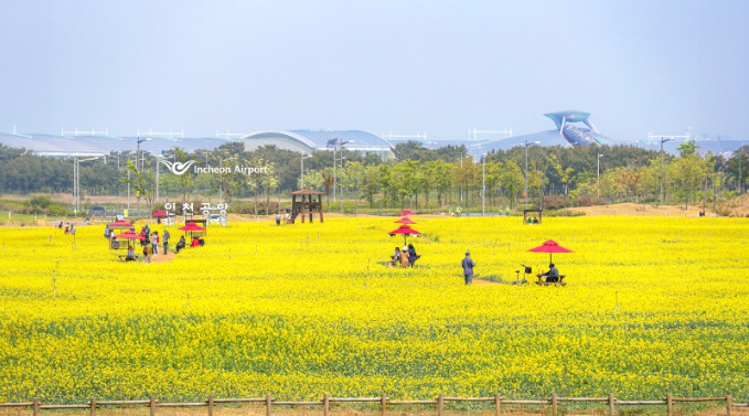 한편, 인천국제공항에도 봄에 만개한 꽃을 볼 수 있습니다. 인천공항의 하늘정원은 매년 봄마다 유채꽃으로 새 단장을 한다고 합니다.