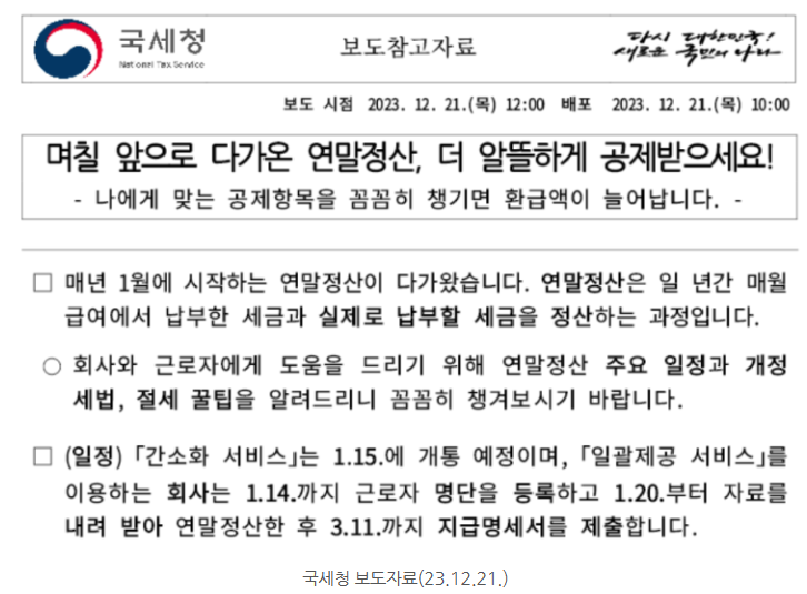 최근(12.21.) 국세청에서 연말정산 알뜰하게 공제받는 방법에 대해 소개하기도 했습니다.